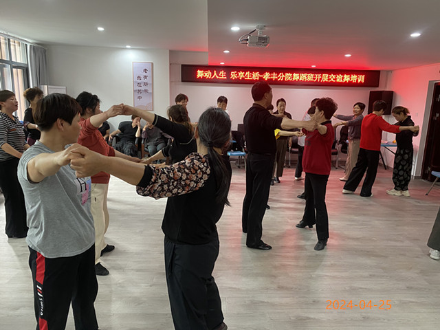 进一步营造“全民健身、健康锻炼”的浓厚氛围,4月25日,安吉县社区教育学院孝丰分院在学校多功能室开展中老年人交谊舞培训活动,共计50位居民参加活动。