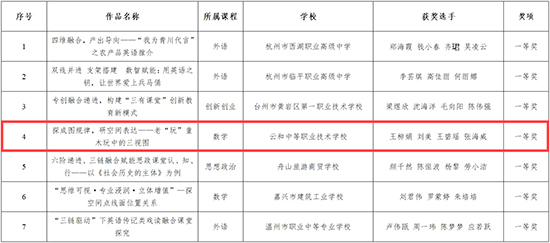 近日,2024年浙江省中等职业学校“多彩课堂”遴选活动结果揭晓,云和县中等职业技术学校王柳娟、刘美、王碧瑶和张海威四位教师的参赛作品《探成图规律,研空间表达——老“玩”童木玩中的三视图》 荣获省一等奖,实现了丽水市多彩课堂省一等奖零的突破!