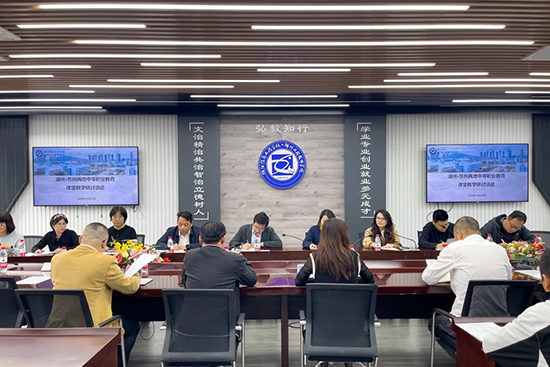 为更好加强湖州、苏州两地职教交流与合作,共同探索课堂教学新路径,提升教学质量,推动职业教育高质量发展,10月24日至25日,湖州·苏州两地中等职业教育课堂教学研讨活动在浙江信息工程学校举行。江苏省吴中中等专业学校党委委员、特级教师、正高级教师李建红带队名师团共9人与学校各专业骨干教师通过讲座、同课异构公开课、评课等环节,就有效提升课堂质量、提高人培质量、提质教师素养等问题进行了深入交流和探讨。浙江信息工程学校党委副书记、校长闵惠敏,党委委员、副校长褚剑飞、陆婷等出席活动。