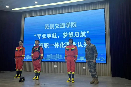 民航交通学院党支部书记赵瑞烨致欢迎辞,并介绍行业情况和发展趋势,让学生对行业和职业有了初步的了解。随后,民航交通学院学生会执行主席娄又嘉同学发言,为学弟学妹们理清中高职不同阶段的学习方向,并表达期望和祝福。