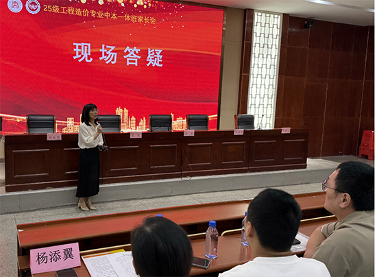 7月12日下午,25级造价中本一体化班家长会在嘉兴市建筑工业学校6号楼鼎建报告厅圆满召开。本次会议旨在解读中本班政策、规划专业发展、强化家校协同,为学生未来发展指明方向。嘉兴南湖学院建筑工程学院副院长陈鲁,工程造价专业负责人刘俊英,嘉兴市建筑工业学校校长李志文、副校长葛魁,教学管理处、厚生学院相关负责人参加会议。会议由教学管理处主任丁国文主持。