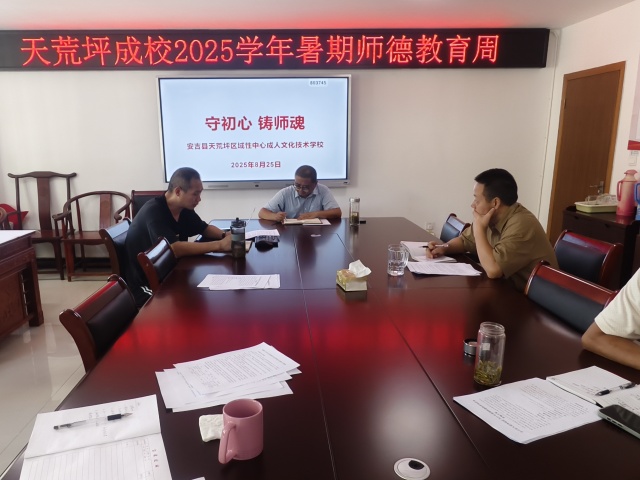 为进一步加强教师职业道德建设,提升教师师德修养,8月25日,安吉县社区教育学院天荒坪分院组织开展2025学年暑期师德教育周活动,以 “守初心 铸师魂” 为主题,引导教师坚守教育初心,筑牢育人使命。