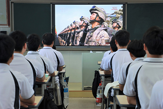 “太震撼了!我们的国家真是越来越强大了!”“这些军人的精气神太棒了,他们就是我们国家的脊梁!”“阅兵式彰显大国风姿,我辈当铭记历史,望盛世中国,如‘你’所愿”不少同学们一边观看,一边兴奋地交流着,激动之情溢于言表。老师们也被阅兵仪式的壮观场面感染,纷纷表示这样的活动是一次非常生动的爱国主义教育课,能够让同学们更加深刻地认识到今天的幸福生活来之不易,更加珍惜和平,努力学习。