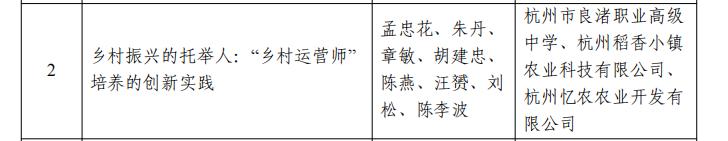 2025年浙江省教学成果奖获奖名单已于近日公布,杭州市良渚职业高级中学《乡村振兴的托举人:“乡村运营师”培养的创新实践》获得中职教育类别一等奖第二名,这是继“良渚文化宴成果”获得省一等奖、国家二等奖后的第二次冲顶,此奖项是对学校教育教学改革卓越成效的极大肯定。