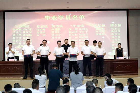 随后,16位镇街学员代表分批上台领取证书,6位学员获评“校优秀毕业生”并接受表彰。