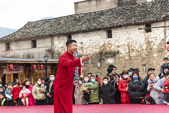 为使自己有个表演与学习的平台,2022年3月他将自己家的一楼改造成横店书场,每周六、日晚上坚持演出,吸引了周边的群众。这一坚持就是两年,不知不觉这个曲艺书场的公益演出竟达到了上百场。