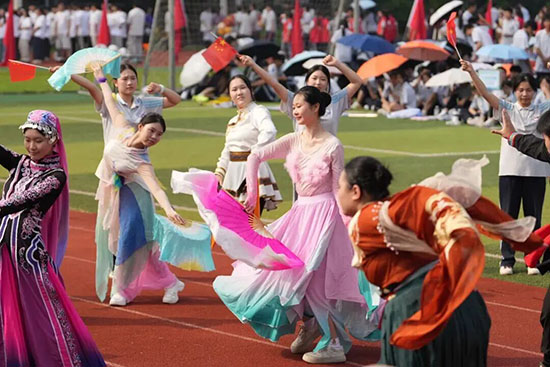 学院电子商务与运营专业部、品质服务与管理专业部、现代艺术与教育专业部带领150位学生共同携手演绎《青荷少年滚灯操》,伴随明快活力的旋律,沉浸式感受传统文化的鲜活魅力!(浙江开放大学临平学院)