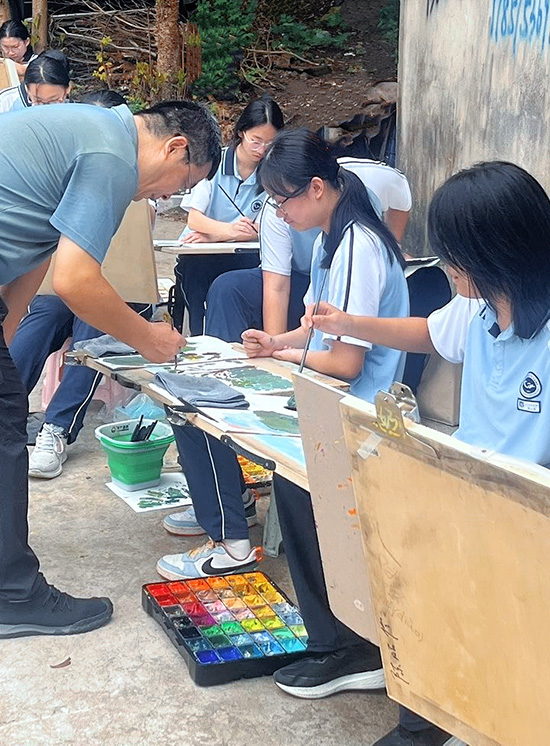 本次“色彩风景”写生课程作为继高一阶段色彩启蒙合作教学之后的第二模块延续,特邀高校博士与华侨职专教师共同授课,实施6周风景色彩课堂“双师共导”模式,祁博士将课程分成了“视角捕捉、色彩关系归纳、光色关系的把握、画面关系塑造”四大模块训练,最后在“写生实践”中实现综合提升。本次课程推进中职至本科七年一贯制教学体系的深度融合与有效贯通,进一步彰显学校在长学制艺术人才培养方面的专业优势。(叶颖颖)