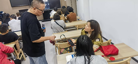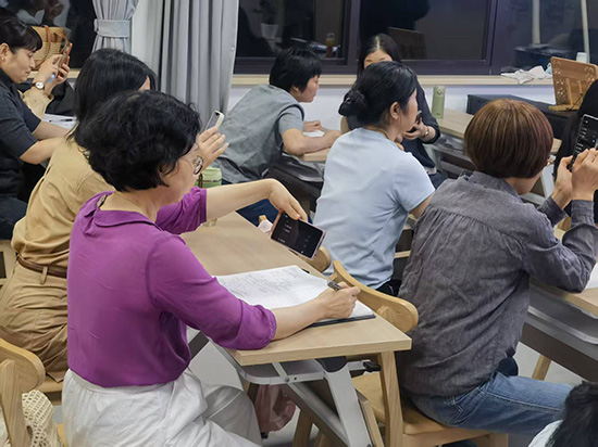 练习“添加转场和配乐”时,年轻人们凑在一起讨论——“这个‘闪白’转场适合拍工作场景”“这首轻音乐配vlog肯定很治愈”,偶尔还会为“哪个字幕字体更清晰”争得热闹;