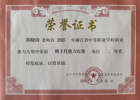 教师竞赛实力的提升有效反哺学生培养。学校系统构建“琢匠学堂”培养体系,学生技能培养成效显著:全年累计获得国家级行业赛奖项17项、省级(含行业赛)29项、市级101项,尤其在嘉兴市中职学校第二十届技能节中斩获12金、17银、19铜,实现获奖数量与质量双突破。
