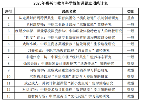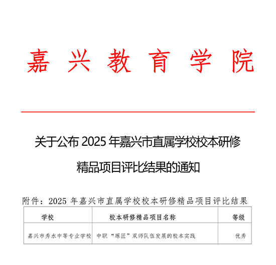 近日,2025年嘉兴市直属学校校本研修精品项目评比结果公布,嘉兴市秀水中等专业学校申报的《中职“琢匠”双师队伍发展的校本实践》获得优秀。这一荣誉背后,是学校坚持“精技善教、匠师合一”核心理念,深耕师资培养的扎实实践。