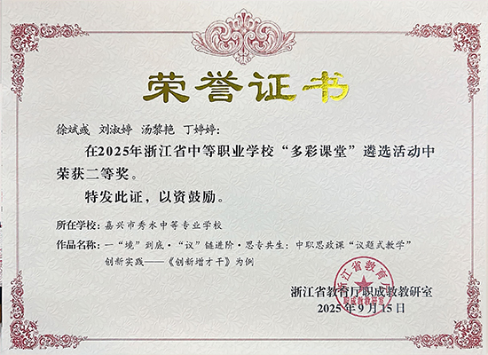 此次获评,既是对学校师资培养路径的充分肯定,更是对未来迈向更高台阶的有力鞭策。学校将以此为新的起点,持续深化“琢匠”品牌建设,不断优化教师发展路径,为培养更多高素质技术技能人才奠定坚实基础,着力打造可在更广范围内示范辐射的中职教师校本研修“秀水范式”。(吴芳洁)