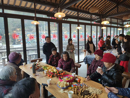 用餐结束大家围坐在一起,举行了暖心的茶话会,品清茶、尝果点、拉家常,畅谈生活感悟与村庄变化,现场欢声笑语不断,洋溢着浓浓的节日温情。