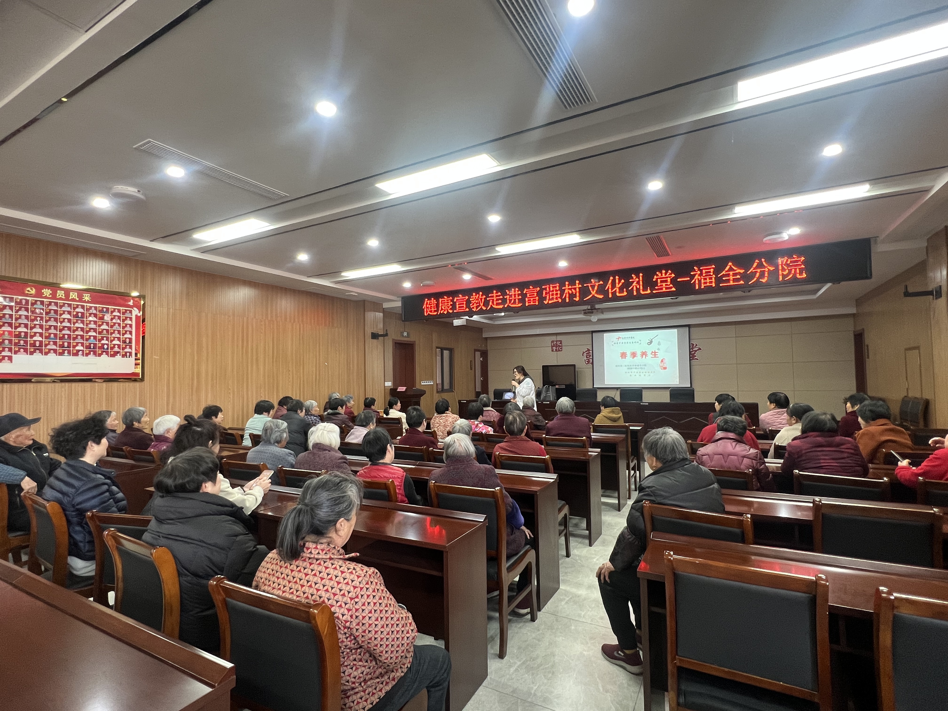 为提升辖区村居民春季健康养护意识,3月12日下午,福全成校走进富强村文化礼堂开展春季养生专题讲座,特邀绍兴第二医院医共体福全分院赵彩琴护师主讲,吸引众多村民到场聆听。